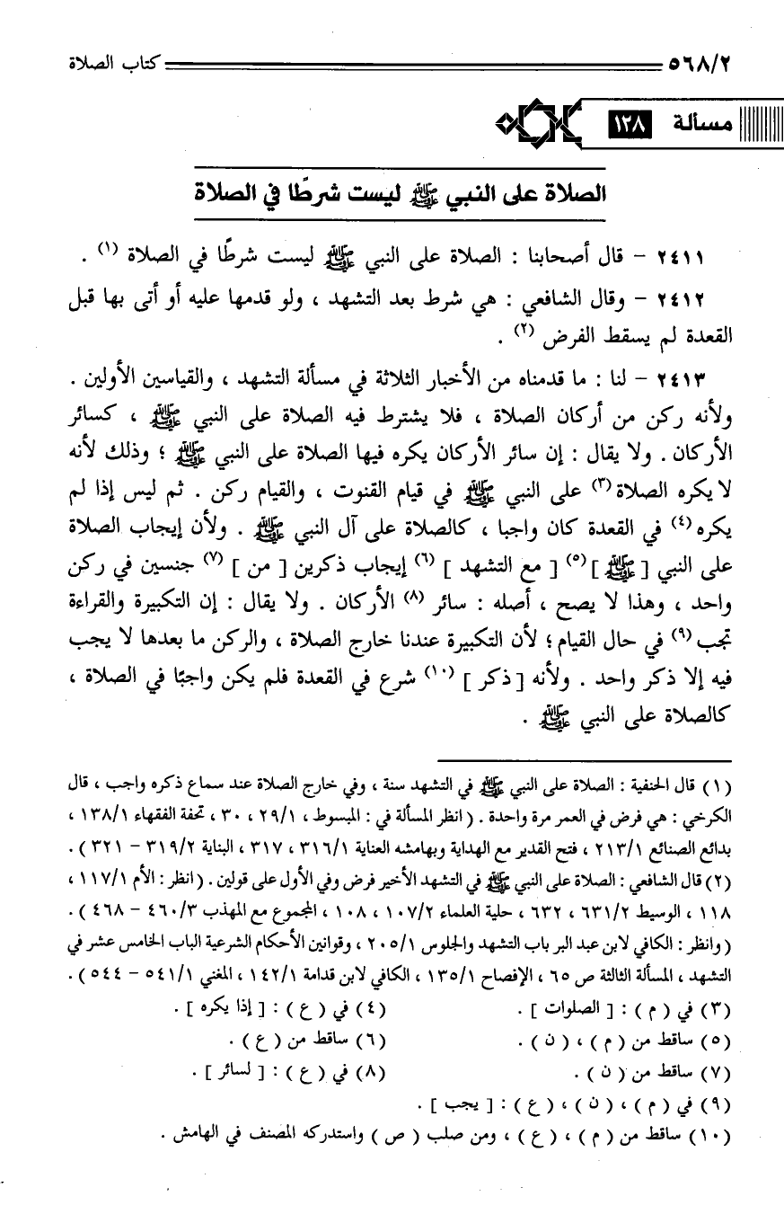2411 - قال أصحابنا: الصلاة على النبي - صلى الله عليه وسلم - ليست شرطا في الصلاة.