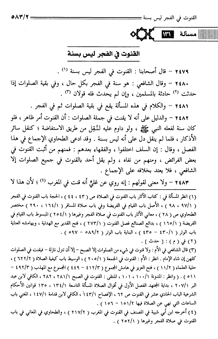 2479 - قال أصحابنا: القنوت في الفجر ليس بسنة.