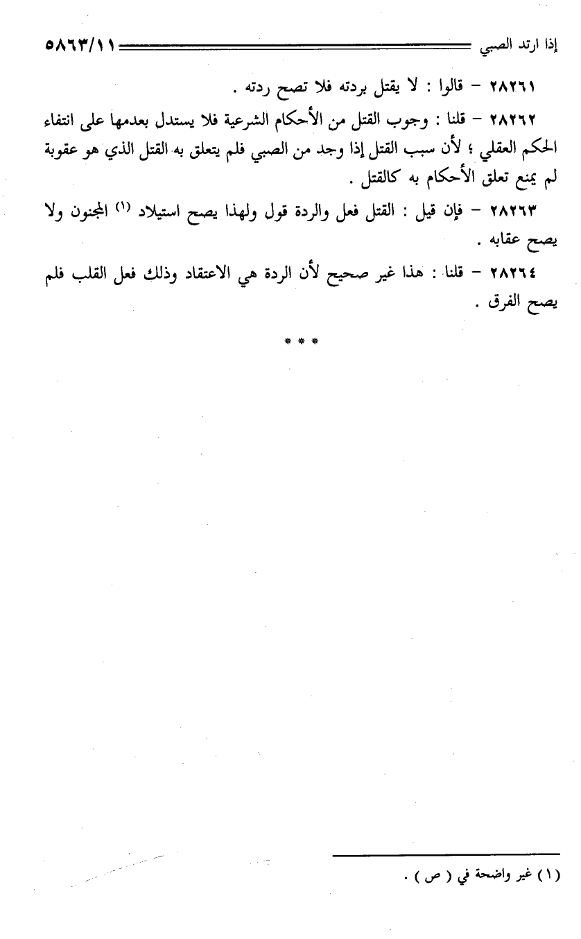 28261 - قالوا: لا يقتل بردته فلا تصح ردته.