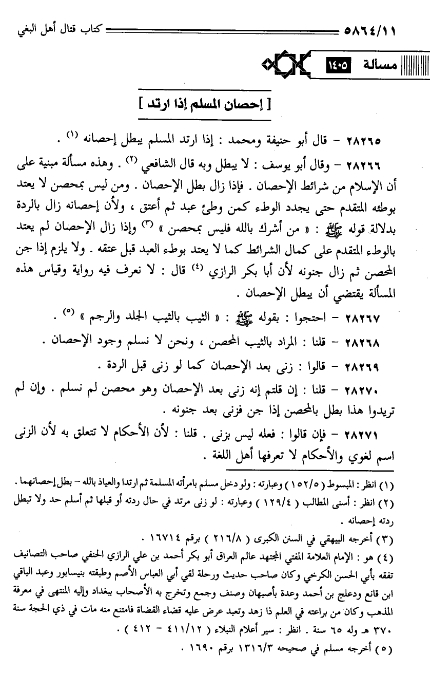 28270 - قلنا: إن قلتم إنه زنى بعد الإحصان وهو محصن لم نسلم. وإن لم تريدوا هذا بطل بالمحصن إذا جن فزنى بعد جنونه.