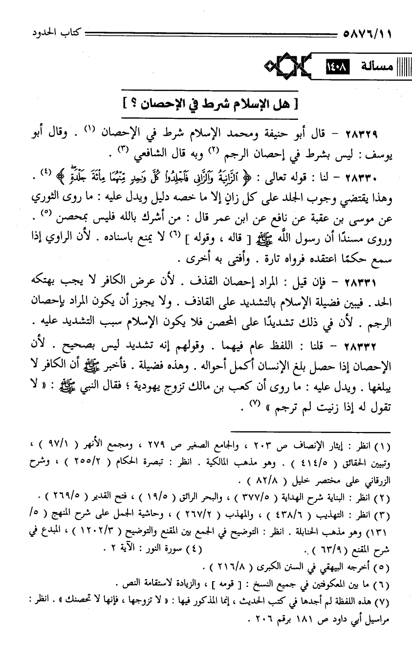 28329 - قال أبو حنيفة ومحمد الإسلام شرط في الإحصان. وقال أبو يوسف: ليس بشرط في إحصان الرجم وبه قال الشافعي.
