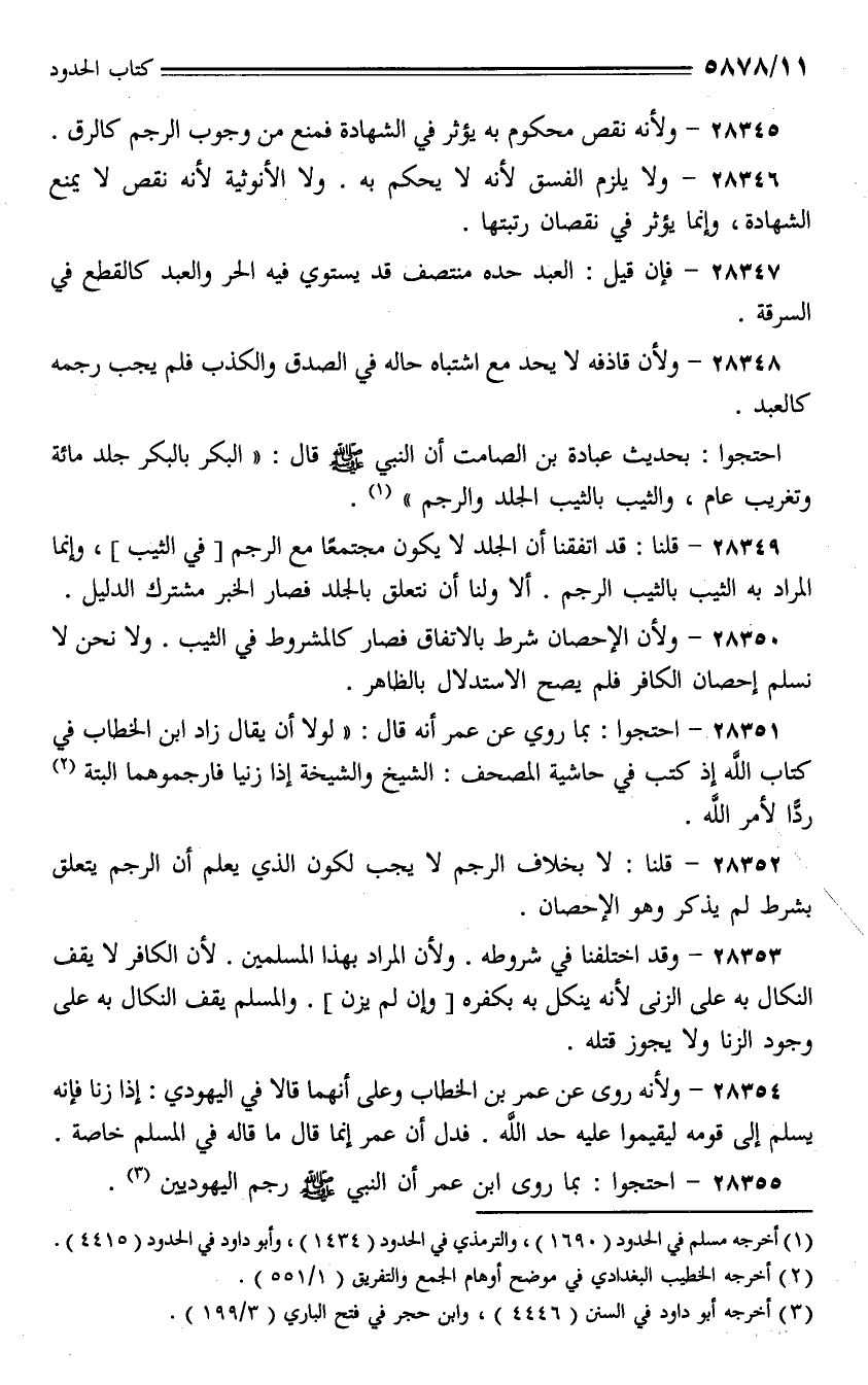 28351 - احتجوا: بما روي عن عمر أنه قال: (لولا أن يقال زاد ابن الخطاب في كتاب الله إذ كتب في حاشية المصحف: الشيخ والشيخة إذا زنيا فارجموهما البتة ردًا لأمر الله.