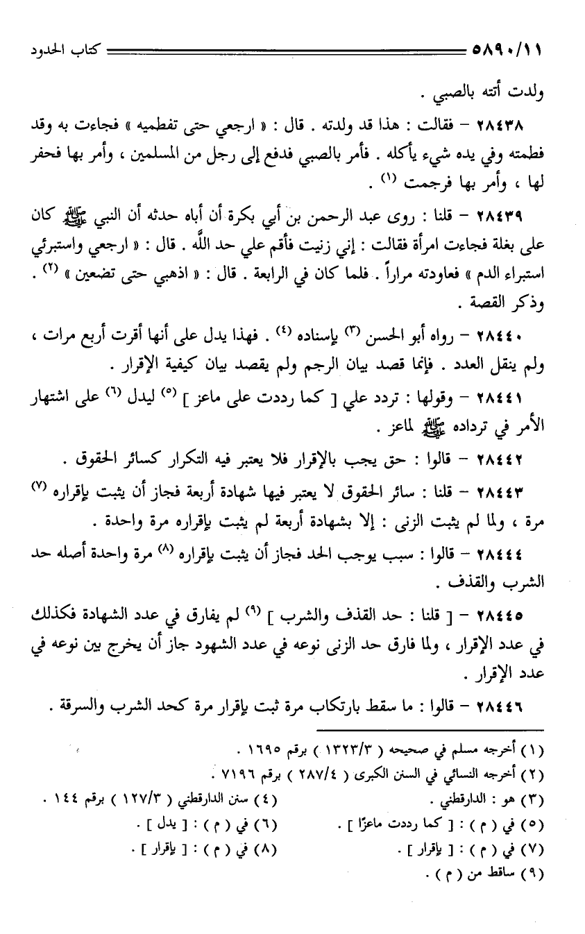 28442 - قالوا: حق يجب بالإقرار فلا يعتبر فيه التكرار كسائر الحقوق.