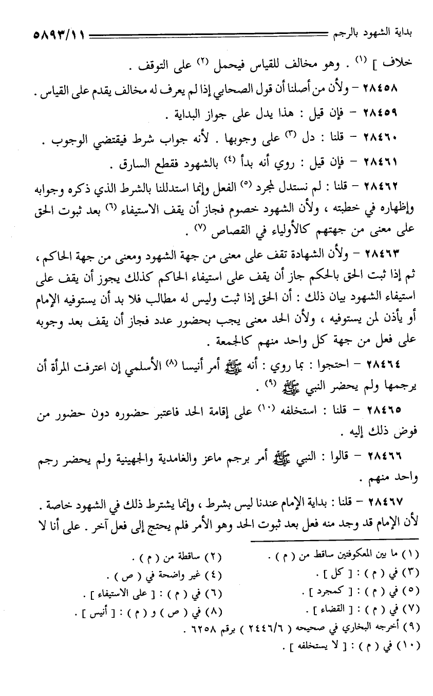28462 - قلنا: لم نستدل لمجرد الفعل وإنما استدللنا بالشرط الذي ذكره وجوابه وإظهاره في خطبته، ولأن الشهود خصوم فجاز أن يقف الاستيفاء بعد ثبوت الحق على معنى من جهتهم كالأولياء في القصاص.
