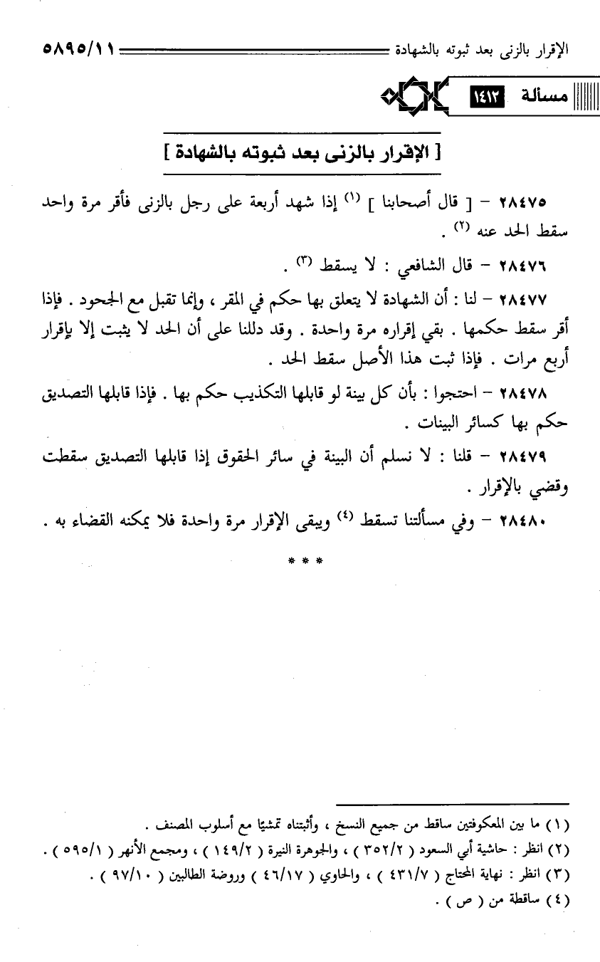 28477 - لنا: أن الشهادة لا يتعلق بها حكم في المقر، وإنما تقبل مع الجحود. فإذا أقر سقط حكمها. بقي إقراره مرة واحدة. وقد دللنا على أن الحد لا يثبت إلا بإقرار أربع مرات. فإذا ثبت هذا الأصل سقط الحد.