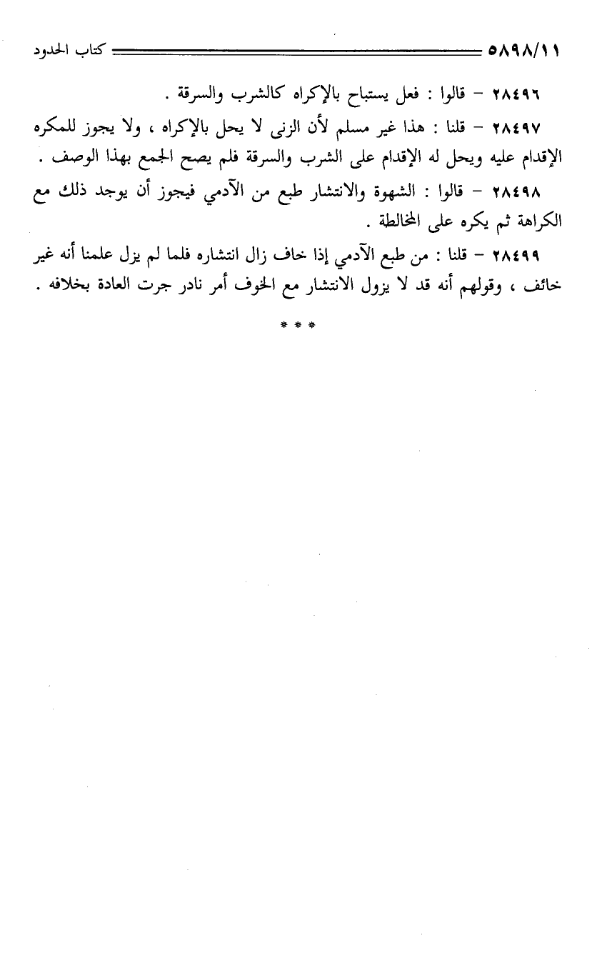 28497 - قلنا: هذا غير مسلم لأن الزنى لا يحل بالإكراه، ولا يجوز للمكره الإقدام عليه ويحل له الإقدام على الشرب والسرقة فلم يصح الجمع بهذا الوصف.