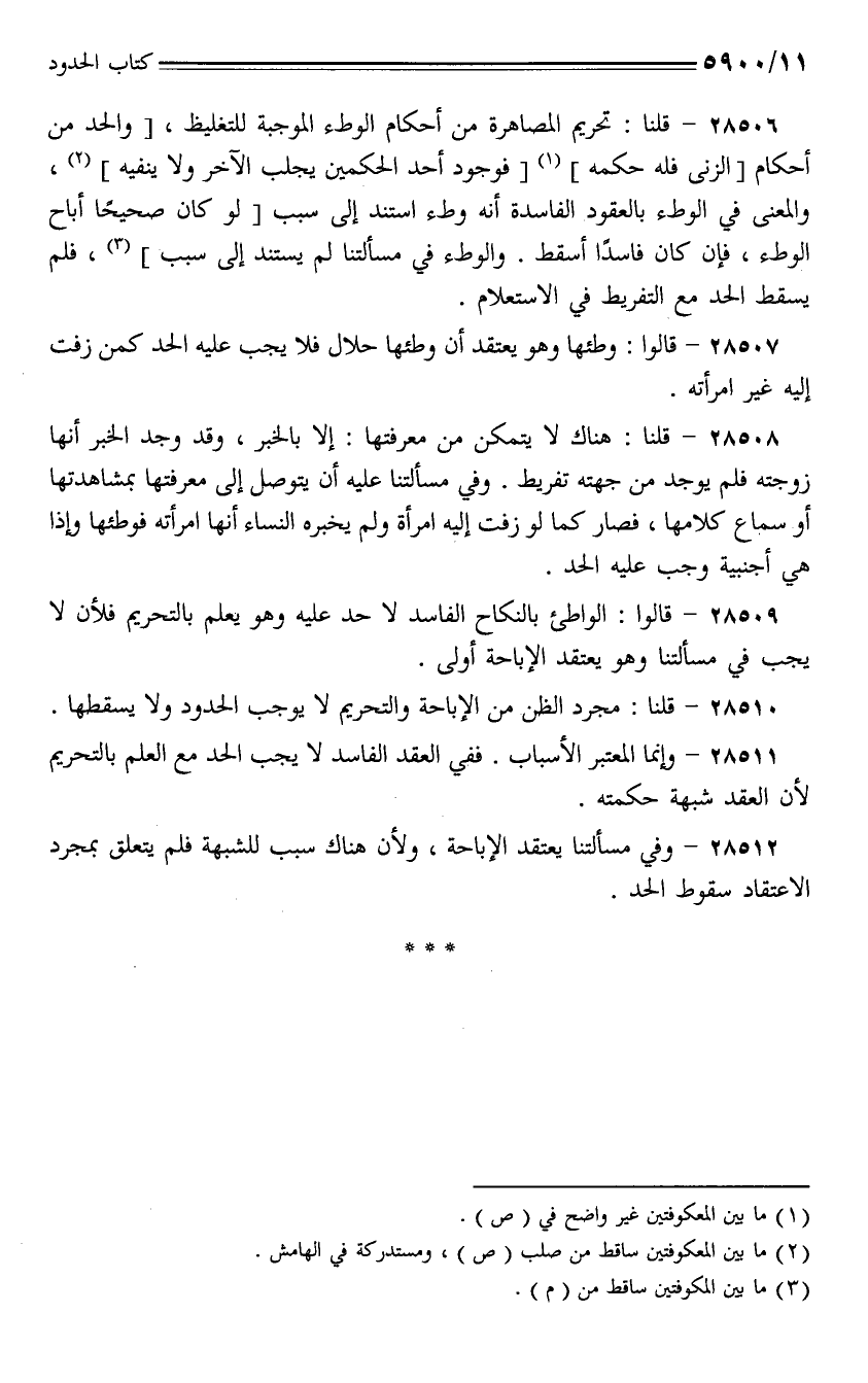 28507 - قالوا: وطئها وهو يعتقد أن وطئها حلال فلا يجب عليه الحد كمن زفت إليه غير امرأته.