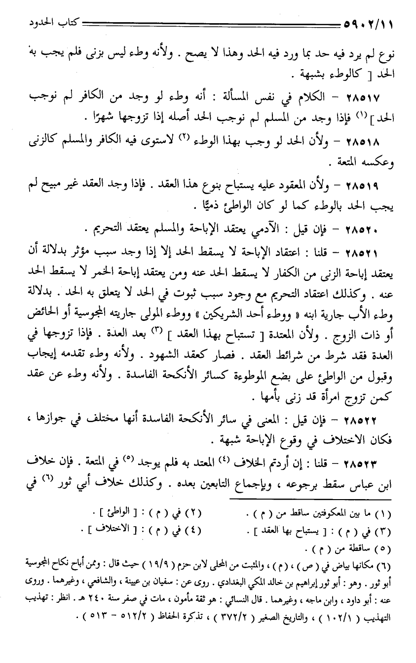 28518 - ولأن الحد لو وجب بهذا الوطء لاستوى فيه الكافر والمسلم كالزنى وعكسه المتعة.