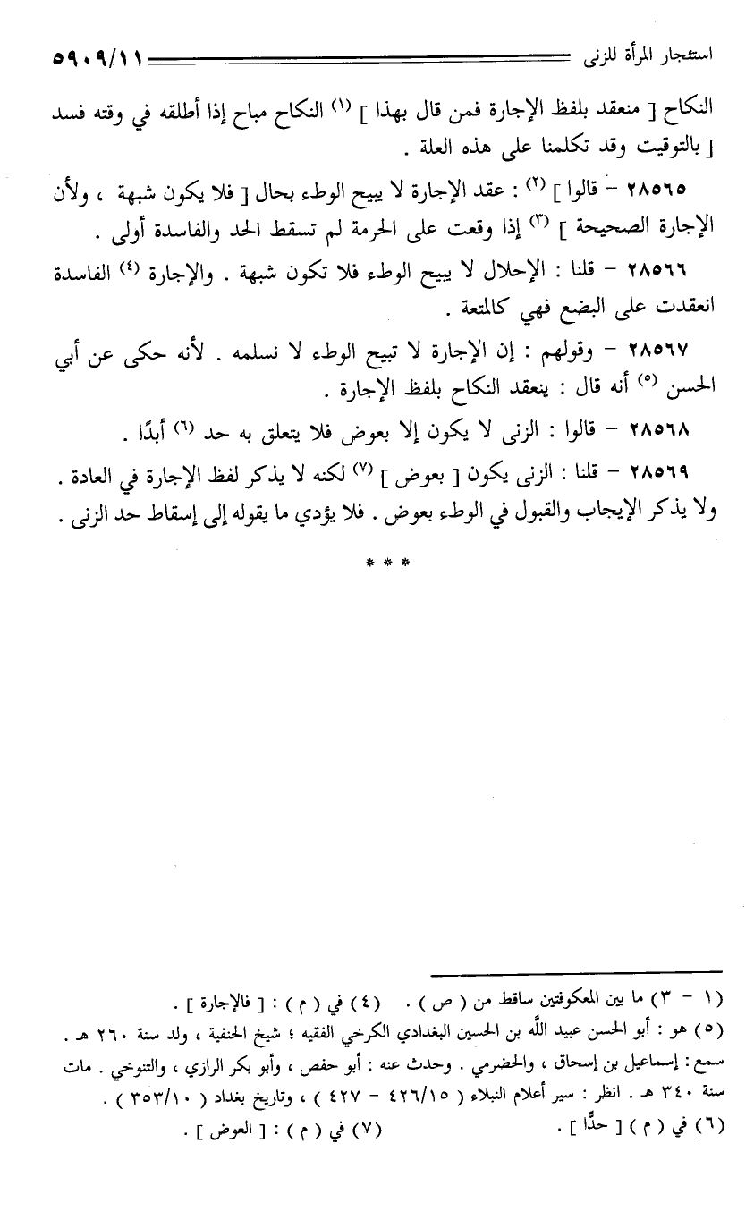 28568 - قالوا: الزنى لا يكون إلا بعوض فلا يتعلق به حد أبدًا.