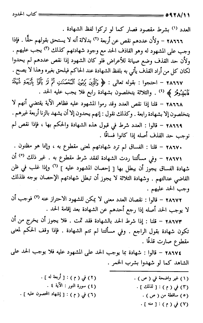 28669 - قالوا: العدد شرط في قبول هذه الشهادة والحكم بها، فإذا نقص لم نوجب حد القذف أصله إذا كانوا فساقًا.
