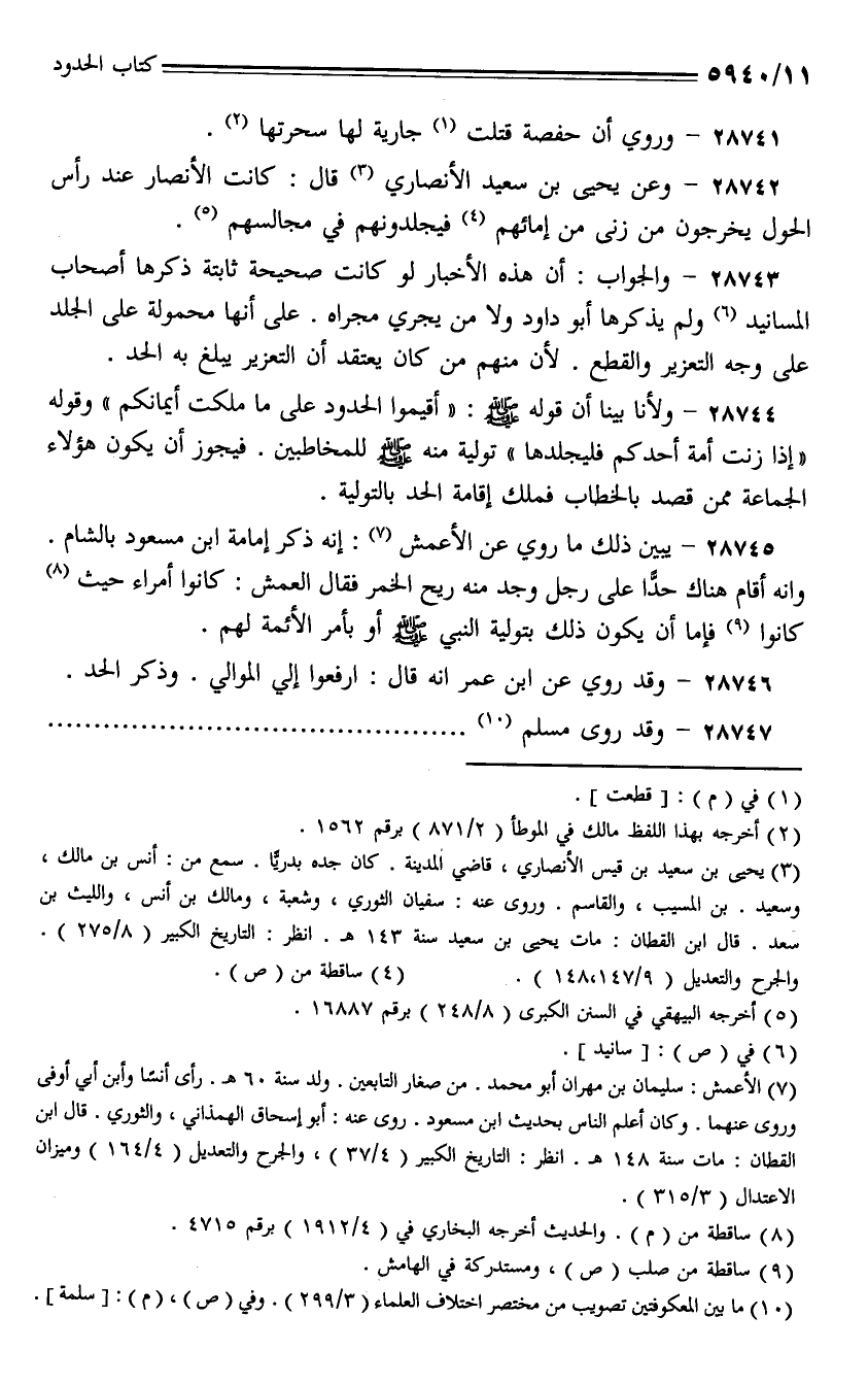 28742 - وعن يحيى بن سعيد الأنصاري قال: كانت الأنصار عند رأس الحول يخرجون من زنى من إمائهم فيجلدونهم في مجالسهم.