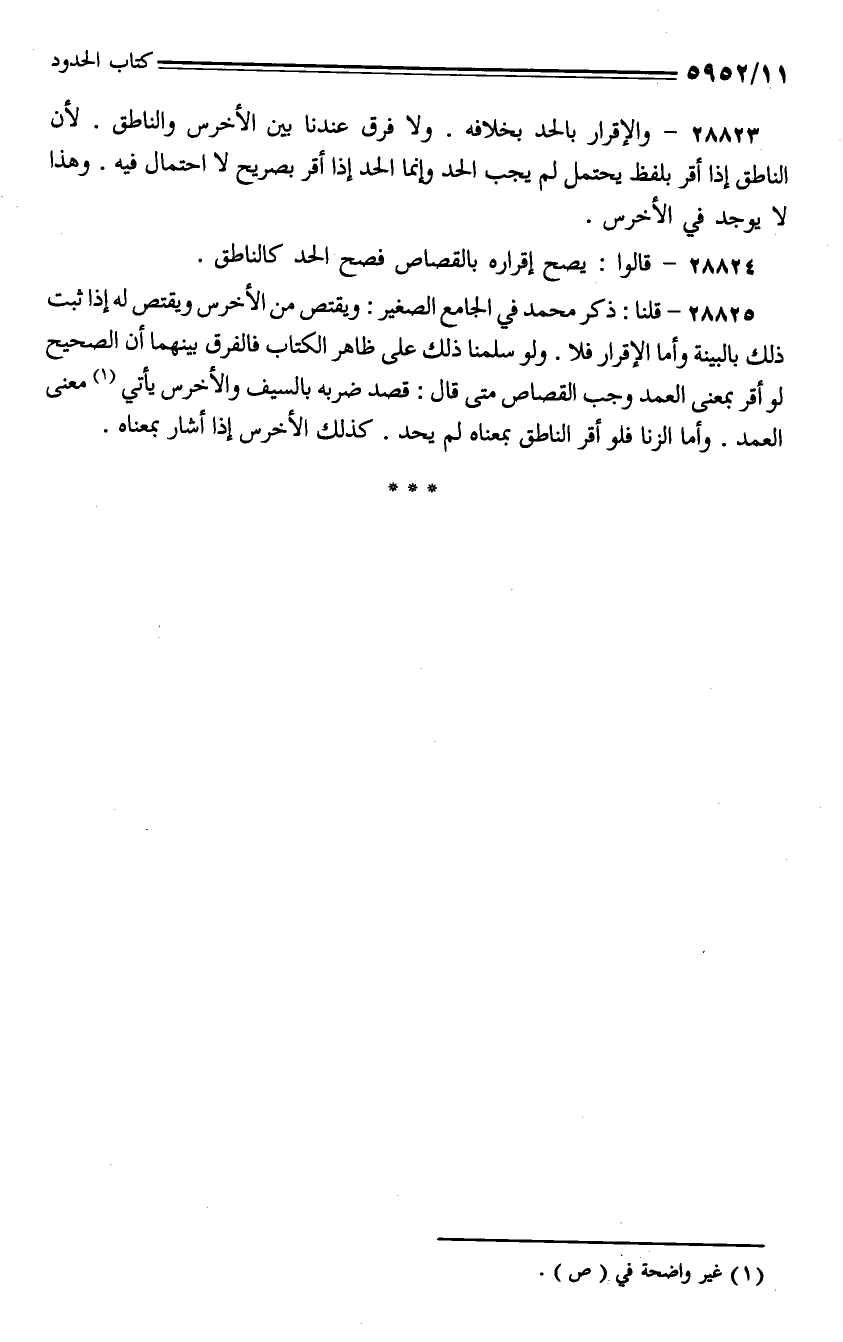 28823 - والإقرار بالحد بخلافه. ولا فرق عندا بين الأخرس والناطق. لأن الناطق إذا أقر بلفظ يحتمل لم يجب الحد وإنما الحد إذا أقر بصريح لا احتمال فيه. وهذا لا يوجد في الأخرس.