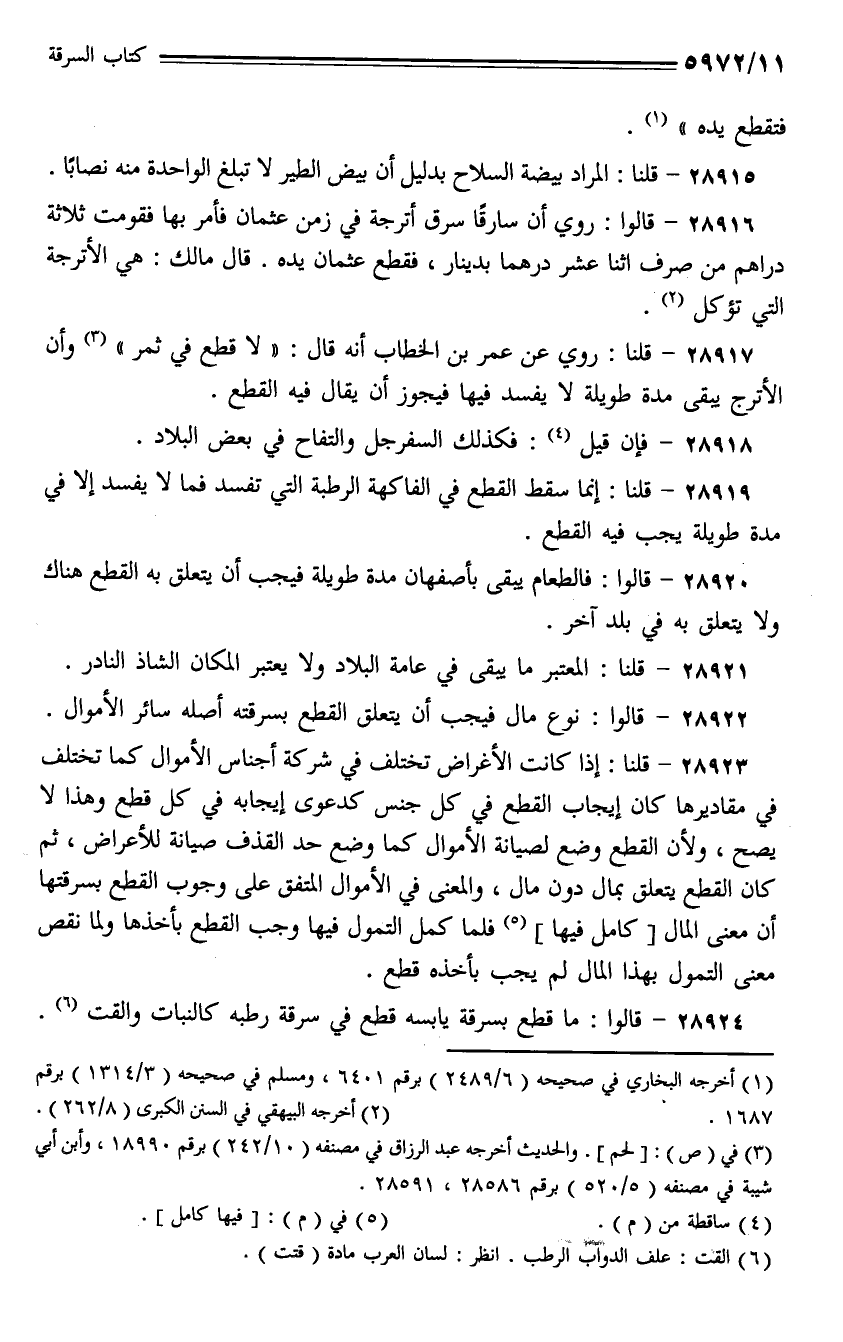 28924 - قالوا: ما قطع بسرقة يابسة قطع في سرقة رطبه كالنبات وألقت.
