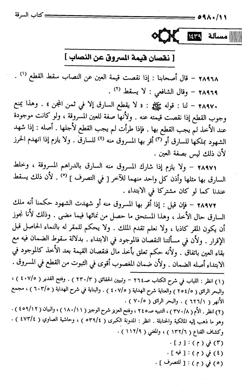 28968 - قال أصحابنا: إذا نقصت قيمة العين عن النصاب سقط القطع.