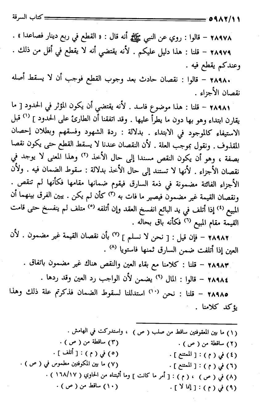28979 - قلنا: هذا دليل عليكم. لأنه يقتضي أنه لا يقطع في أقل من ذلك. وعندكم يقطع فيه.
