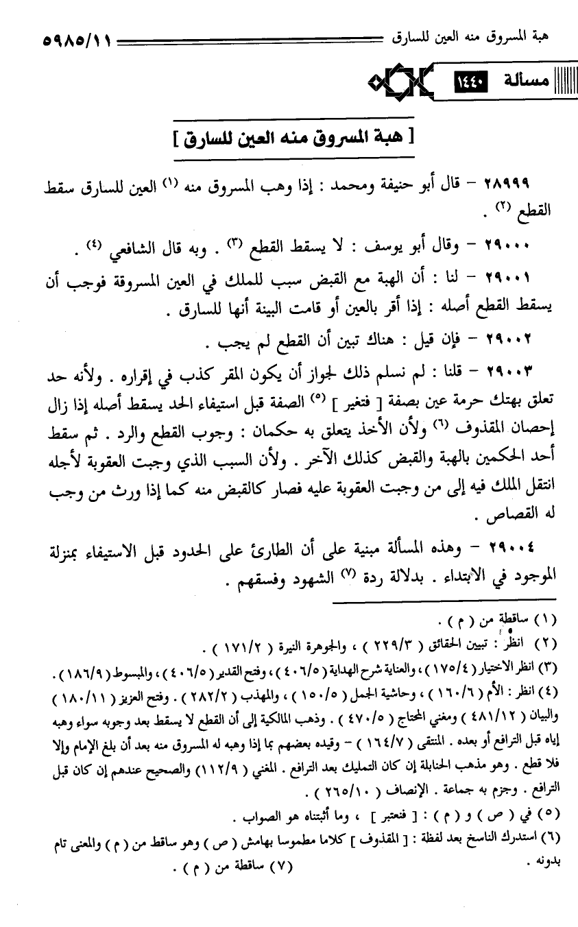 2899 - قال أبو حنيفة ومحمد: إذا وهب المسروق منه العين للسارق سقط القطع.