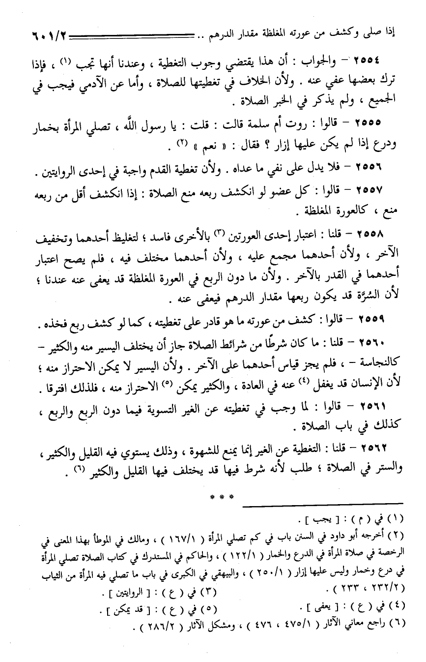 2561 - قالوا: لما وجب في تغطيته عن الغير التسوية فيما دون الربع والربع، كذلك في باب الصلاة.