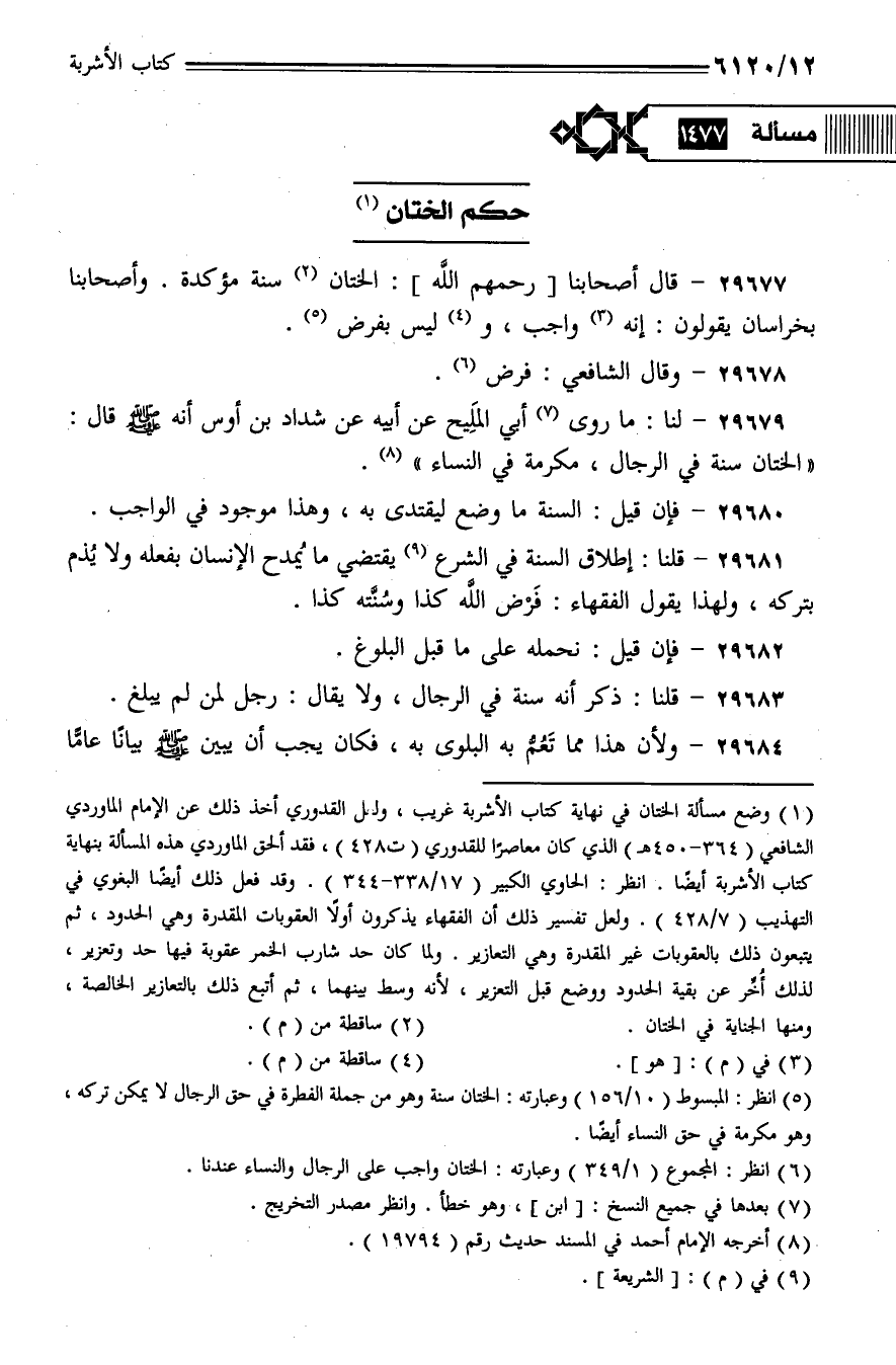 29677 - قال أصحابنا [رحمهم الله]: الختان سنة مؤكدة. وأصحابنا بخراسان يقولون: إنه واجب، وليس بفرض.