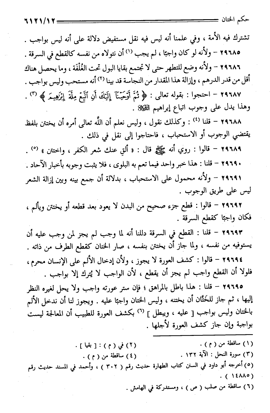 29688 - قلنا: وكذلك نقول، وليس نعلم أن الله تعالى أمره أن يختتن بلفظ يقتضي الوجوب أو الاستحباب، فاحتاجوا إلى نقل في ذلك.