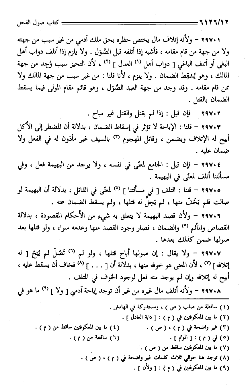 29707 - ولا يقال: إن صولها أباح قتلها، ولو لم تصل لم يبح [له إتلافه]، لأن المعنى هو خوفه منها، بدلالة أن [....] فخاف أن يسقط عليه، أبيح له إتلافه وإن لم يوجد منه فعل لوجود الخوف في المتلف.