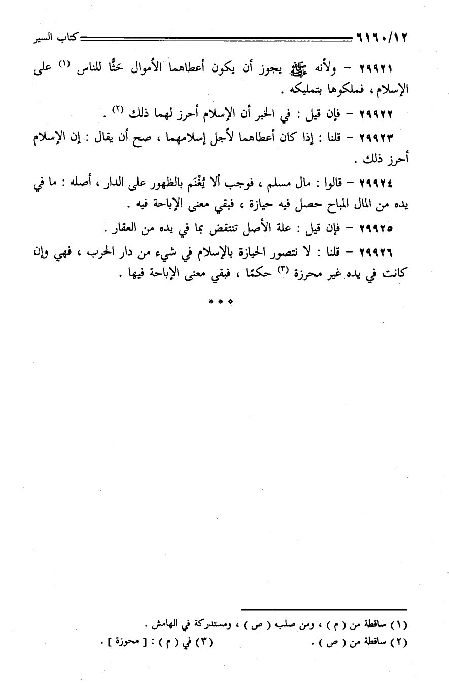 29926 - قلنا: لا نتصور الحيازة بالإسلام في شيء من دار الحرب، فهي وإن كانت في يده غير محرزة حكمًا، فبقي الإباحة فيها.