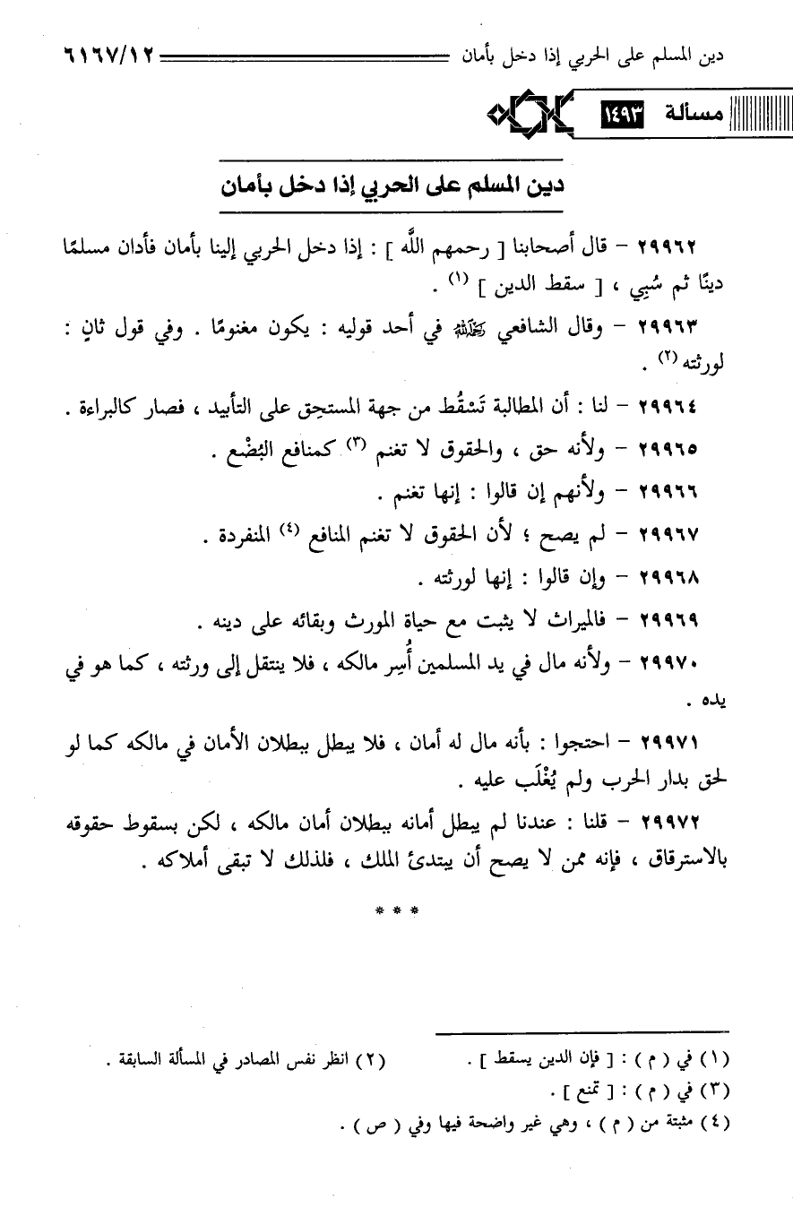 29962 - قال أصحابنا [رحمهم الله]: إذا دخل الحربي إلينا بأمان فأدان مسلمًا دينًا ثم سبي، [سقط الدين].