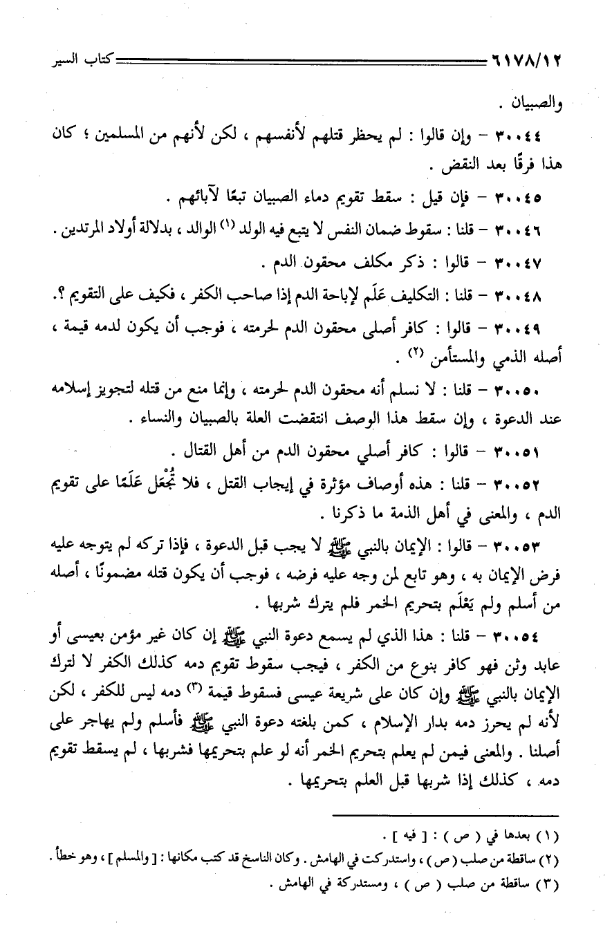 30048 - قلنا: التكليف علم لإباحة الدم إذا صاحب الكفر، فكيف على التقويم؟.