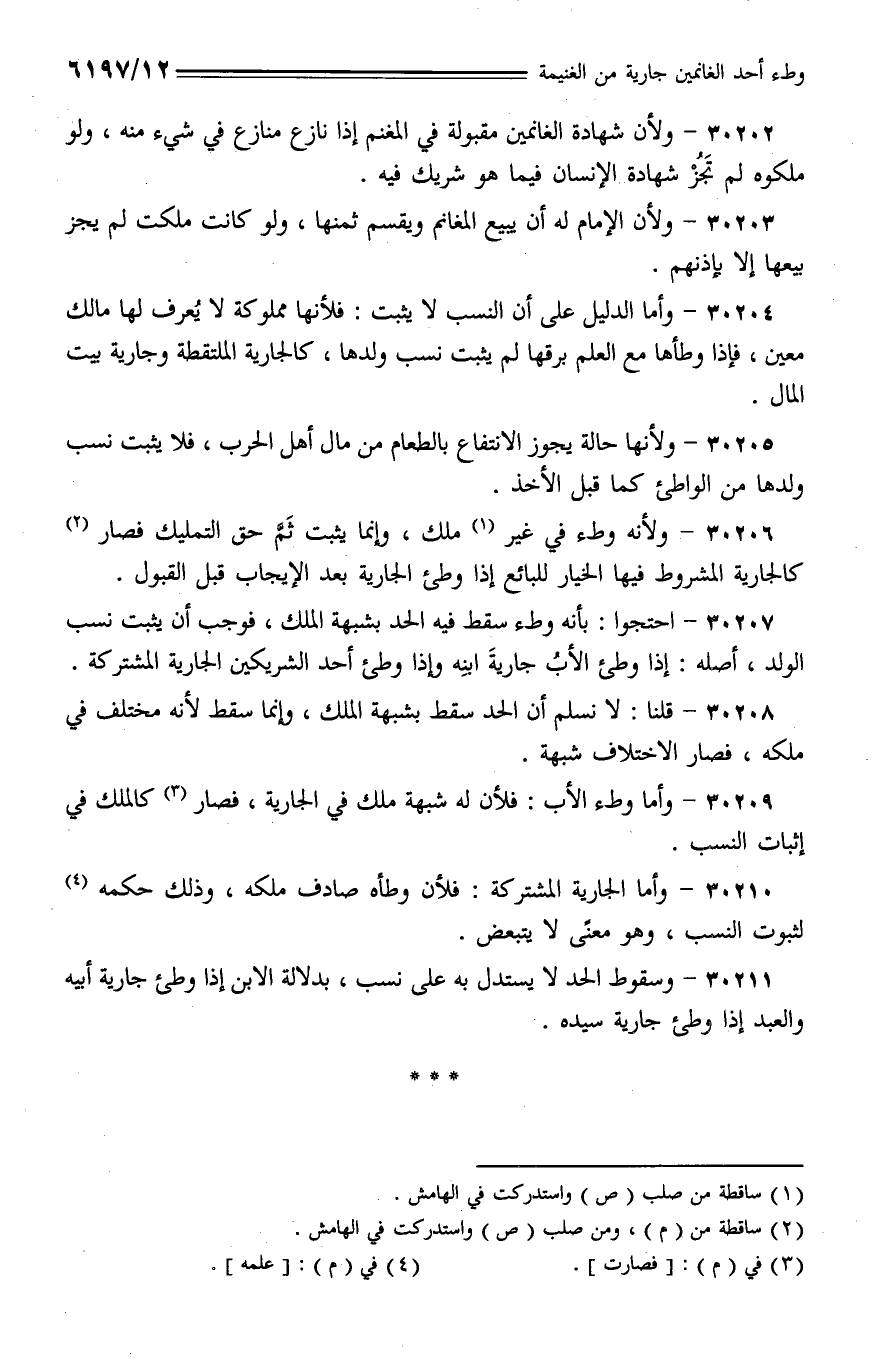 30210 - وأما الجارية المشتركة: فلأن وطأه صادف ملكه، وذلك حكمه لثبوت النسب، وهو معنى لا يتبعض.