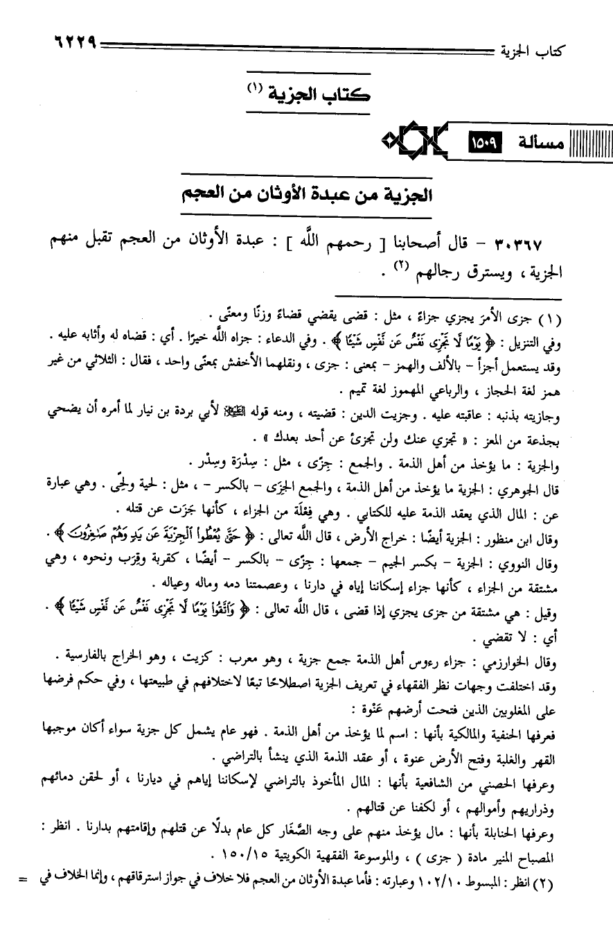 30367 - قال أصحابنا [رحمهم الله]: عبدة الأوثان من العجم تقبل منهم الجزية، ويسترق رجالهم.