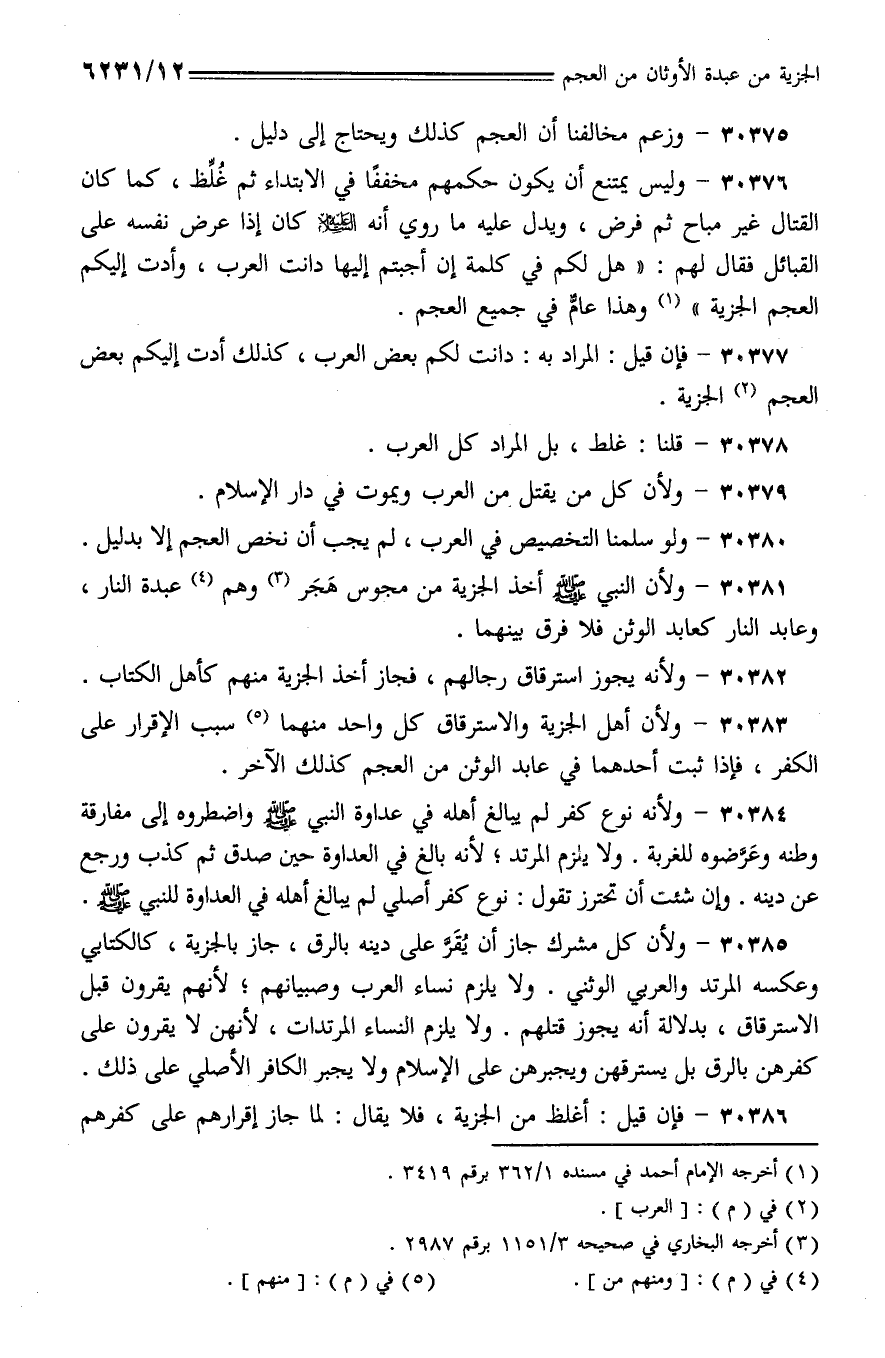 30375 - وزعم مخالفنا أن العجم كذلك ويحتاج إلى دليل.