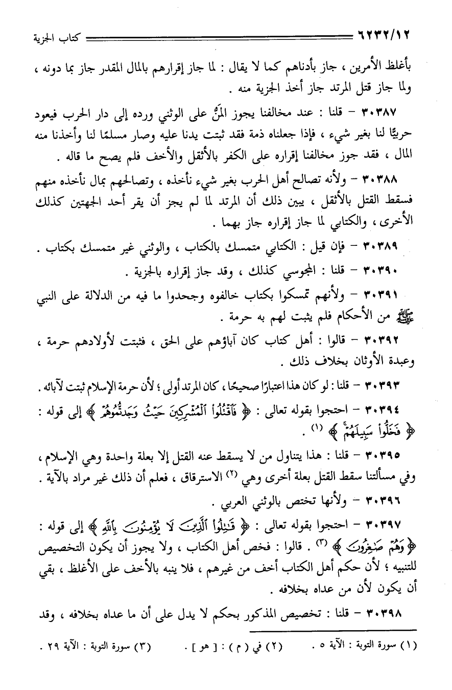 30391 - ولأنهم تمسكوا بكتاب خالفوه وجحدوا ما فيه من الدلالة على النبي - صلى الله عليه وسلم - من الأحكام فلم يثبت لهم به حرمة.