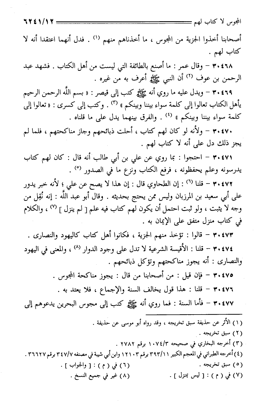 30477 - فأما السنة: فما روي أنه - صلى الله عليه وسلم - كتب إلى مجوس البحرين يدعوهم إلى