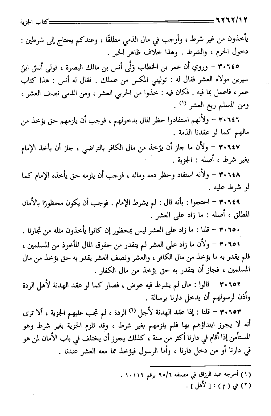 30650 - قلنا: ما زاد على العشر ليس بمحظور إن كانوا يأخذون مثله من تجارنا.
