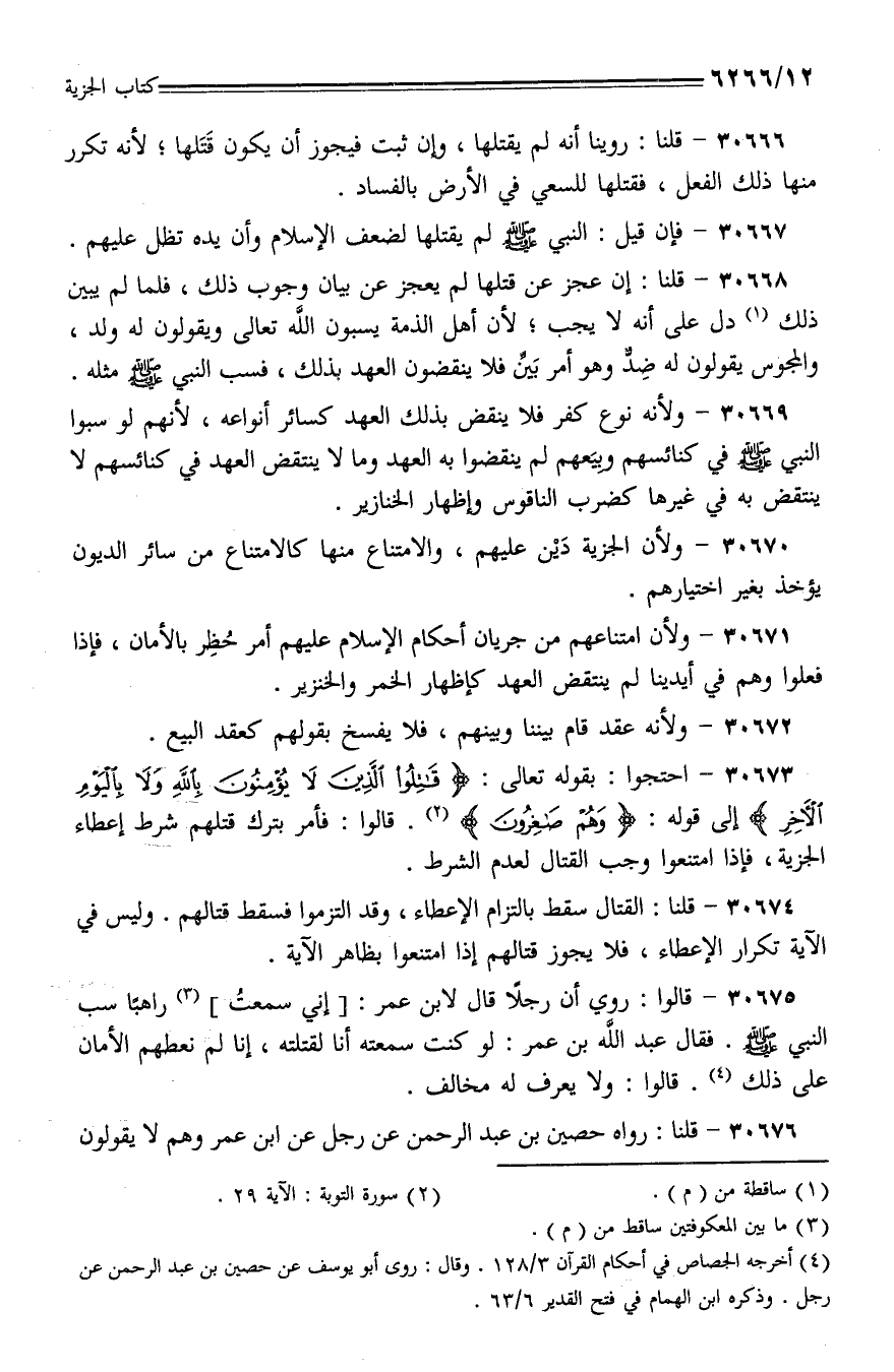 30674 - قلنا: القتال سقط بالتزام الإعطاء، وقد التزموا فسقط قتالهم. وليس في الآية تكرار الإعطاء، فلا يجوز قتالهم إذا امتنعوا بظاهر الآية.