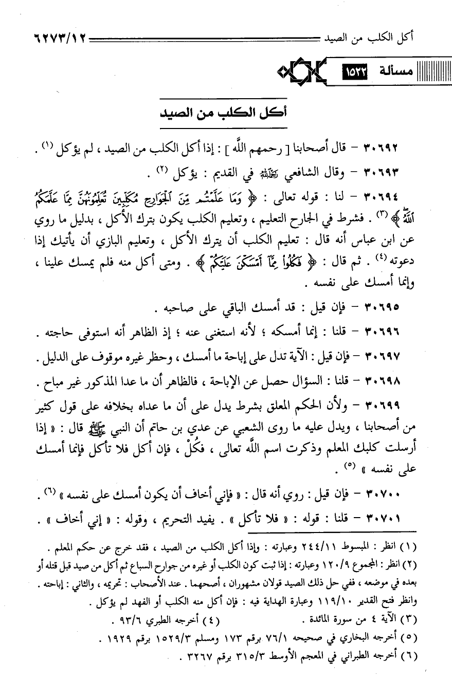 30692 - قال أصحابنا [رحمهم الله]: إذا أكل الكلب من الصيد، لم يؤكل.