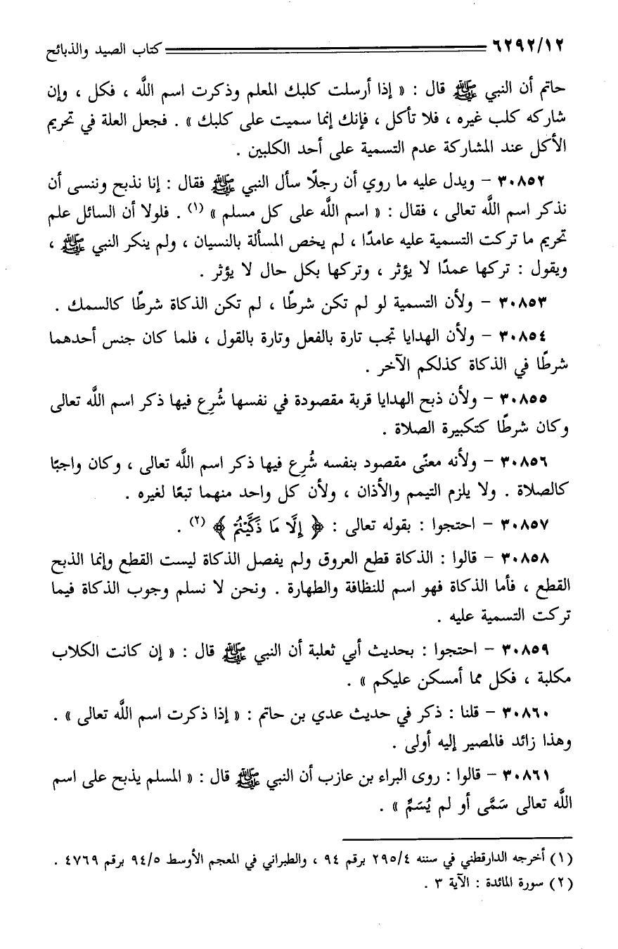 30854 - ولأن الهداية تجب تارة بالفعل وتارة بالقول، فلما كان جنس أحدهما شرطًا في الذكاة كذلكم الآخر.