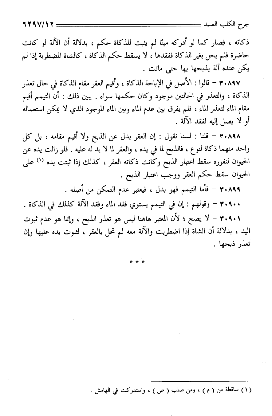 30900 - وقولهم: إن في التيمم يستوي فقد الماء وفقد الآلة كذلك في الذكاة.