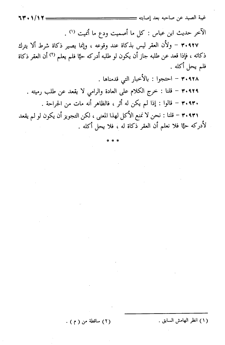 30929 - قلنا: خرج الكلام على العادة والرامي لا يقعد عن طلب رميته.