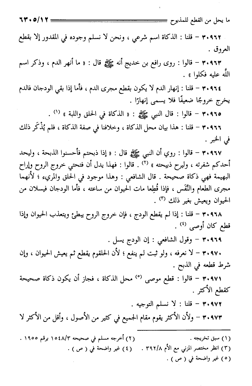 30966 - قلنا: هذا بيان محل الذكاة، وخلافنا في صفة الذكاة، فلم يذكر ذلك في الخبر.