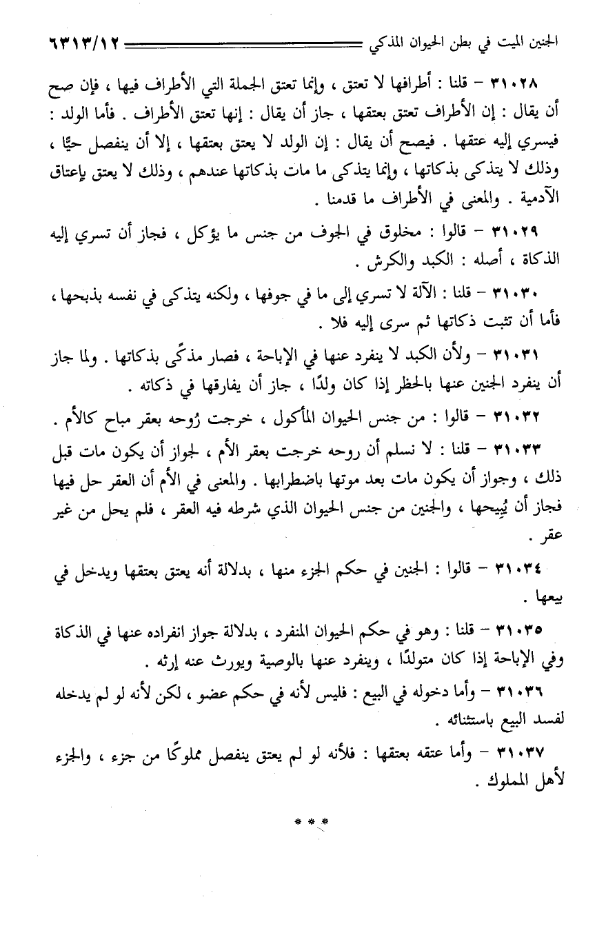 31032 - قالوا: من جنس الحيوان المأكول، خرجت روحه بعقر مباح كالأم.