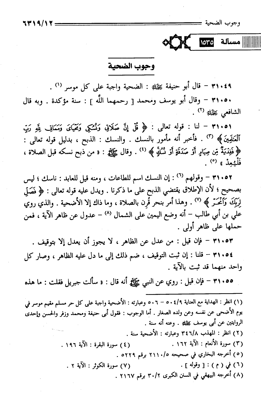 31049 - قال أبو حنيفة رحمه الله: الضحية واجبة على كل موسر.