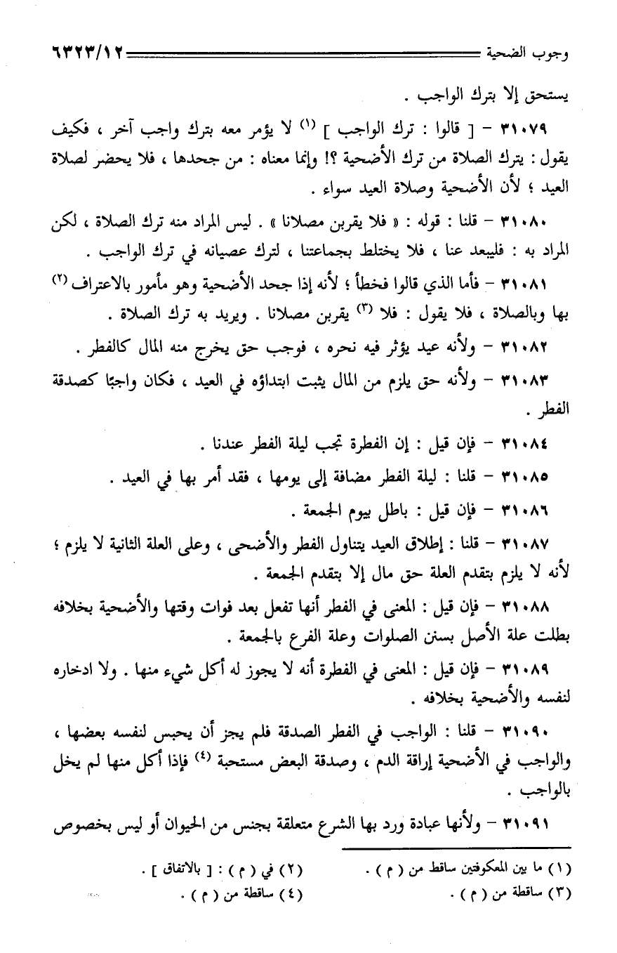 31083 - ولأنه حق يلزم من المال يثبت ابتداؤه في العيد، فكان واجبًا كصدقة الفطر.