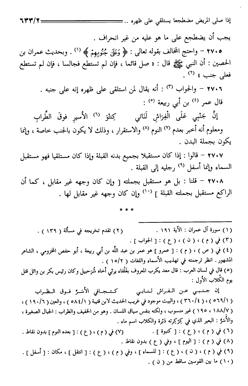 2706 - والجواب: أنه يقال لمن استلقى على ظهره إنه على جنبه.