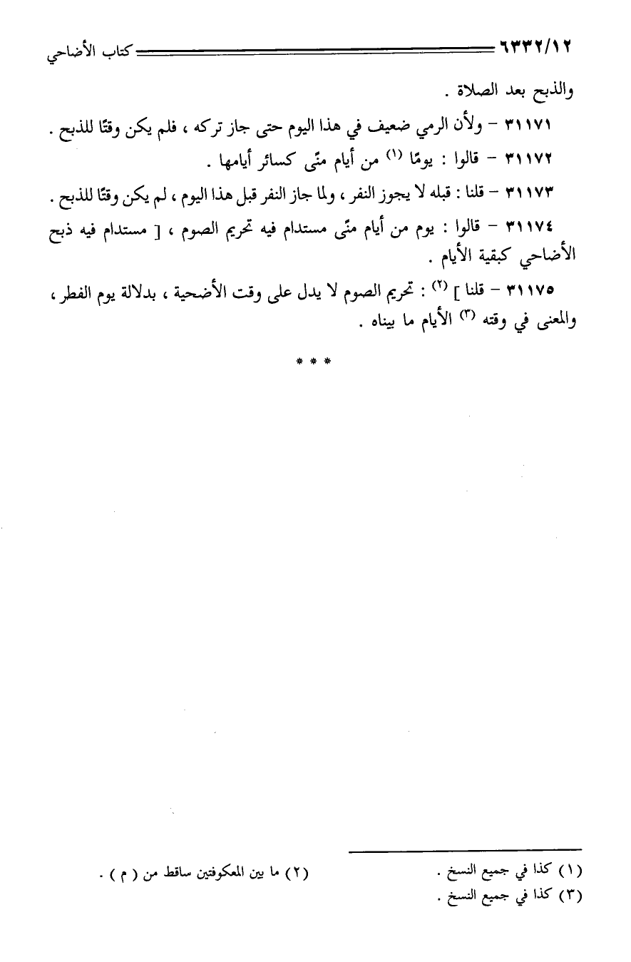 31174 - قالوا: يوم من أيام منى مستدام فيه تحريم الصوم، [مستدام فيه ذبح الأضاحي كبقية الأيام.