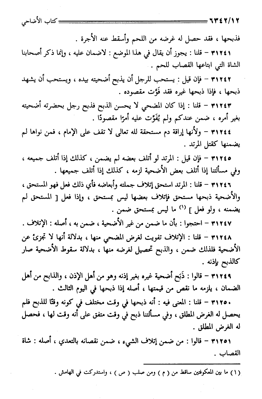 31247 - احتجوا: بأن ما ضمن من غير الأضحية، ضمن به، أصله: الإتلاف.