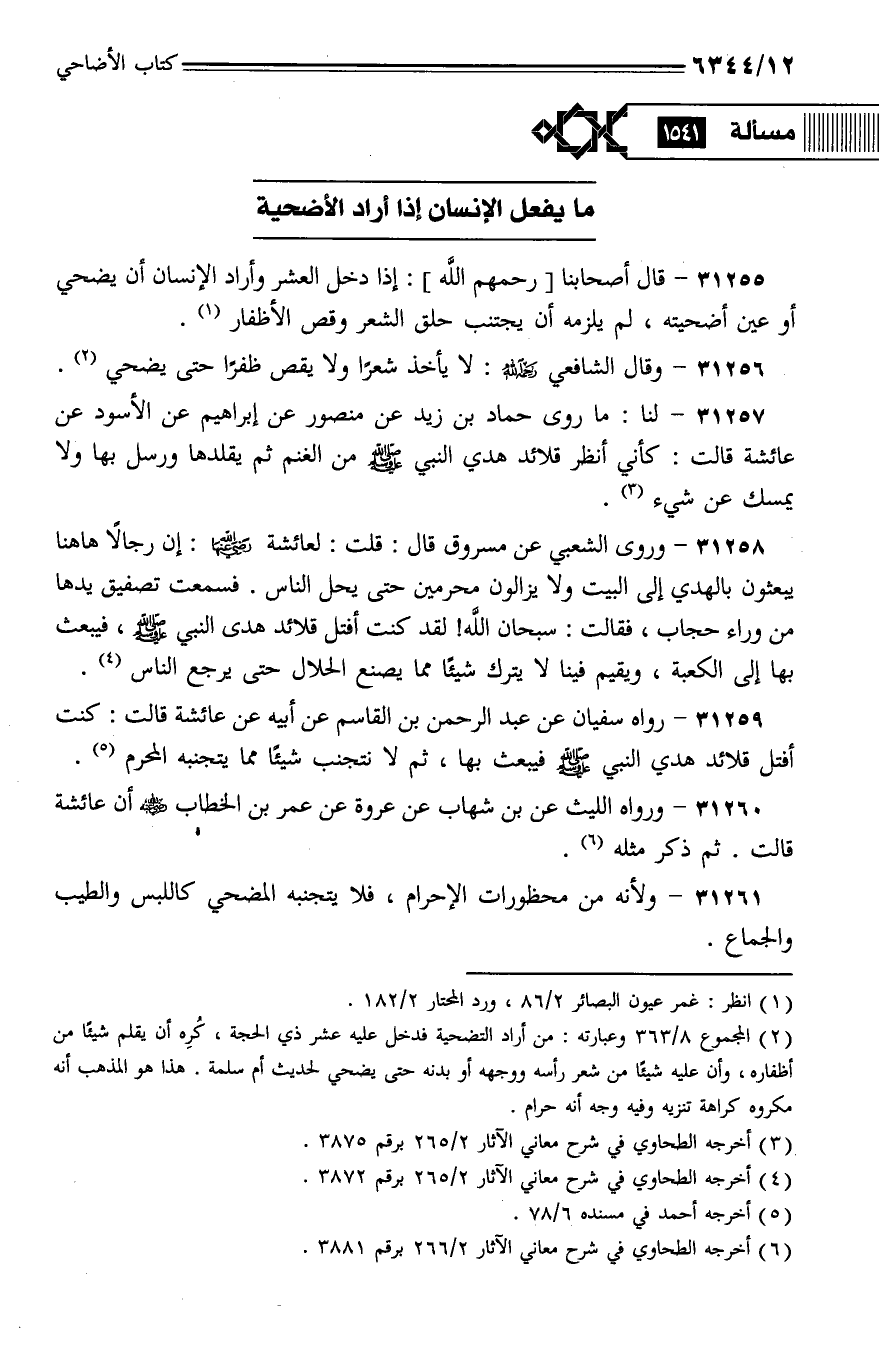 31256 - وقال الشافعي رحمه الله: لا يأخذ شعرًا ولا يقص ظفرًا حتى يضحي.