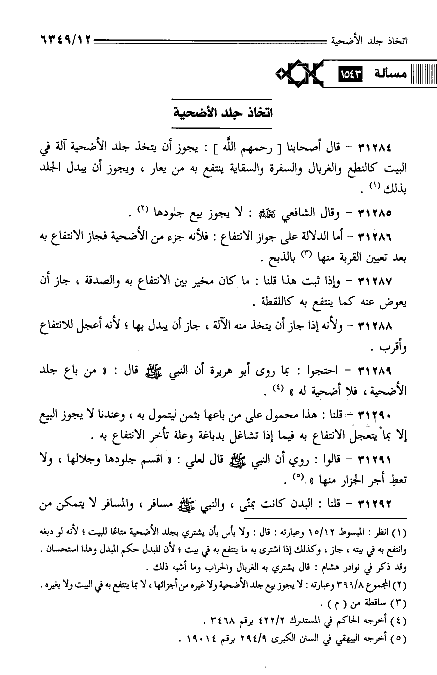 31289 - احتجوا: بما روى أبو هريرة أن النبي - صلى الله عليه وسلم - قال: (من باع جلد الأضحية، فلا أضحية له).