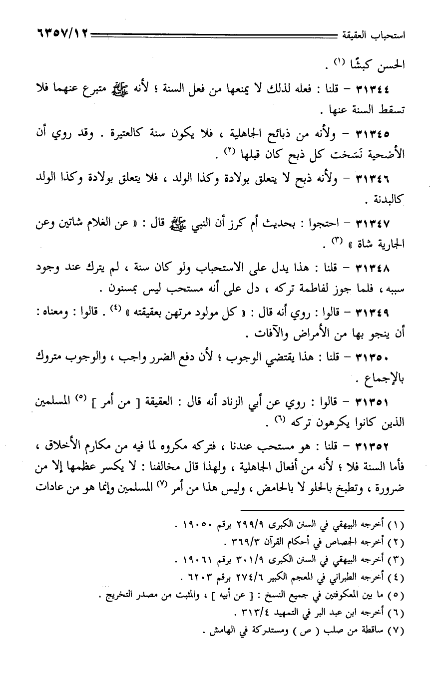 31351 - قالوا: روي عن أي الزناد أنه قال: العقيقة [من أمر] المسلمين الذين كانوا يكرهون تركه.