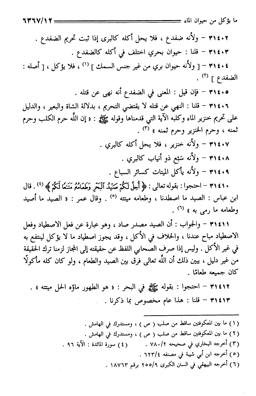 31403 - قلنا: حيوان بحري اختلف في أكله كالضفدع.