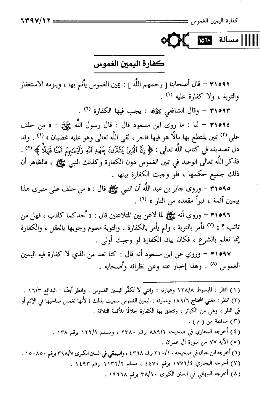 31597 - وروي عن ابن مسعود أنه قال: كنا نعد من الذي لا كفارة فيه اليمين الغموس. وهذا إخبار عنه وعن نظرائه وأصحابه.